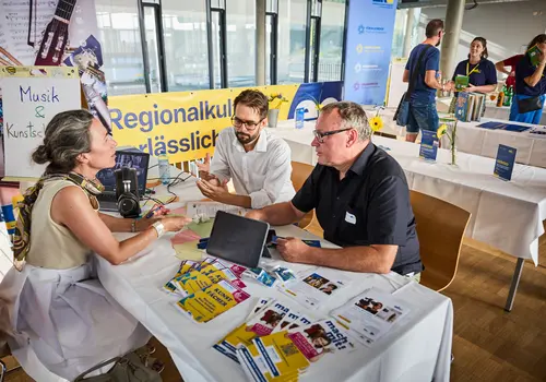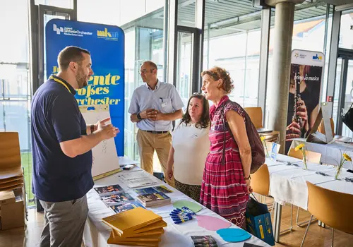 Der zweite Schwerpunkt der Veranstaltung lag auf den persönlichen Begegnungen – mit Musikschullehrenden, die sich aus ganz Niederösterreich für diese Veranstaltung in Krems, die in dieser Form zum ersten Mal abgehalten wurde, zusammengefunden haben. Daneben konnten sich die Teilnehmenden an zahlreichen Stationen mit aktuellen Informationen zu musikschulrelevanten Themen einen Rucksack mit wertvollen Inputs für das kommende Schuljahr schnüren.
