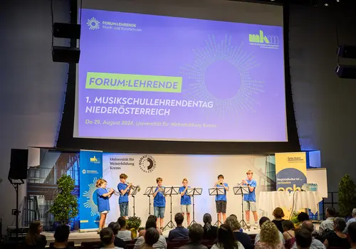 Rund 350 Musikschullehrerinnen und Musikschullehrer aus allen Musikschulregionen in Niederösterreich nahmen am Do 29. August 2024 am 1. Musikschullehrendentag NÖ des MKM Musik & Kunst Schulen Management NÖ an der Universität für Weiterbildung in Krems teil. Die Veranstaltung für die Lehrenden in den niederösterreichischen Musikschulen stand im Zeichen der Vernetzung, des Austauschs und der gemeinsamen Entwicklung des Musikschulwesens in Niederösterreich.