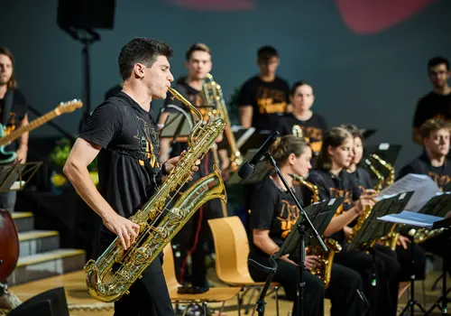 Den glanzvollen Abschluss des gelungenen Tages der niederösterreichischen Musik- und Kunstschulen bildete das Konzert des Jugendjazzorchester Niederösterreich featuring „5/8erl in Ehr´n“.