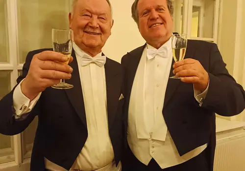 Bei bester Stimmung im Saal endete das Konzert mit dem Donauwalzer und als Draufgabe mit dem Radetzkymarsch. Das Publikum klatschte begeistert mit, Adolf Vasicek gab dazu den Einsatz. Gemeinderat Peter Schindler bedankte sich bei den Künstlern und lud die Gäste zum Abschluss auf ein Gläschen Sekt ein.