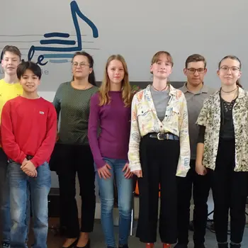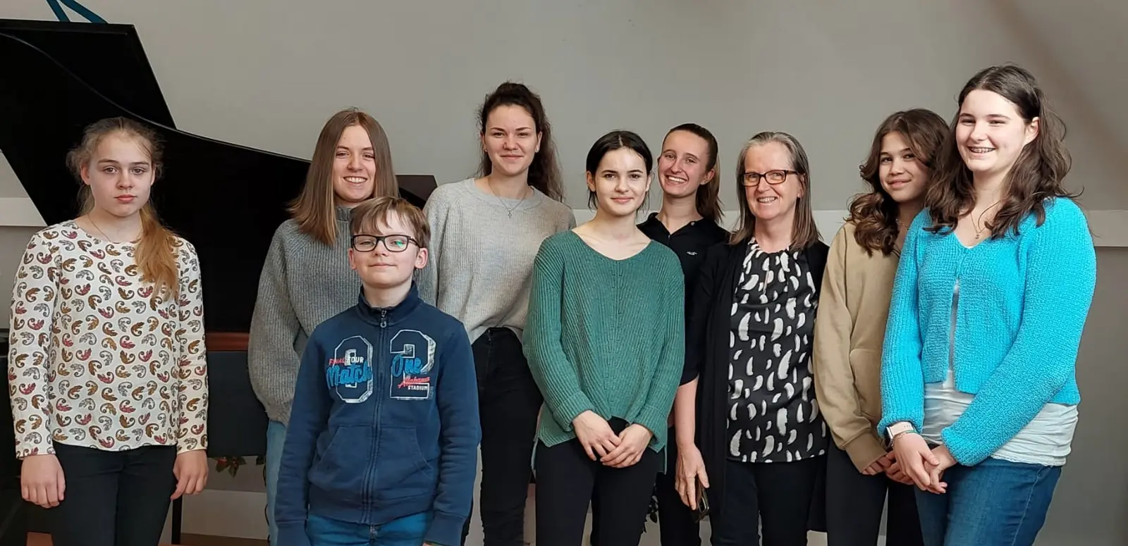 Renner: Petra Renner mit ihren Schüler:innen Clara, Lalita, Vincent, Lilly, Hannah, Julia, Lilli und Vassa
