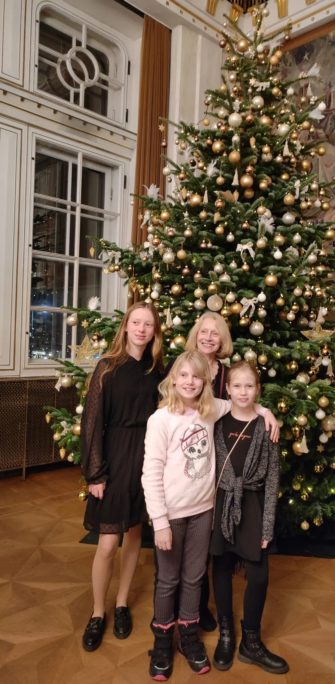 Foto: Lehrerin Susanne Tomaschek mit Madita, Nina und Christine