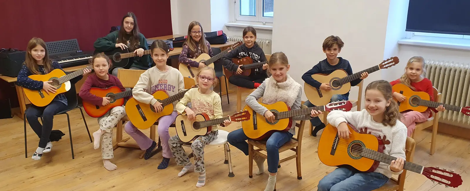 Die Vorfreude auf Weihnachten war bei den Gitarrist:innen der Musikschule der Korneuburger Musikfreunde groß. Unter der Anleitung von Michal Svoboda trafen sich daher viele, um unter dem Motto Christmas is coming weihnachtlich zu musizieren. In der Gruppe wurden die unterschiedlichsten Weihnachtslieder gespielt. Man freute sich am Gemeinschaftserlebnis und ließ der Vorfreude auf die Weihnachtsferien freien Lauf!