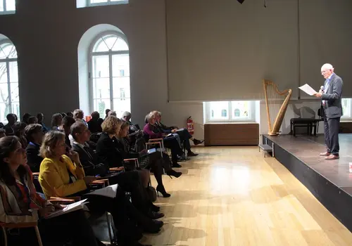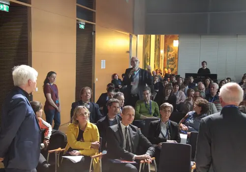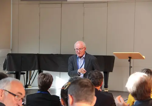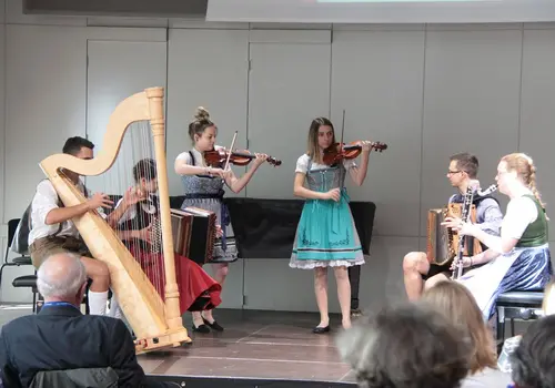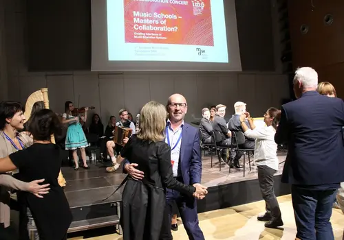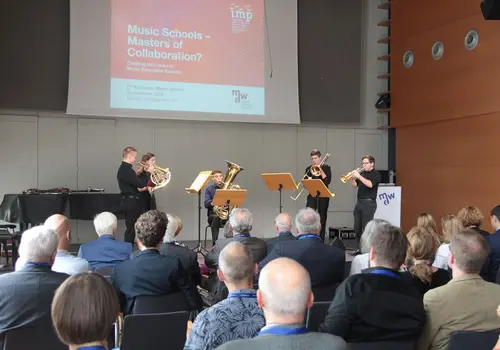 „Collaboration“, also Zusammenarbeit, war auch das bestimmende Thema des Symposiums unter dem Titel „Music Schools – Masters of Collaboration?“. Mit international renommierten Vortragenden wie Stefan Gies aus Deutschland, Heidi Westerlund aus Finnland und Peter Renshaw aus England bot die Tagung neben europäischen Forschungsergebnissen zum Thema Kooperationen auch Podiumsgespräche und Keynotes. In 32 Präsentationen wurden zahlreiche Ansätze und vielfältige Perspektiven für eine umfassende und breite musikalische Bildung, die auch über institutionelle Grenzen hinausgeht, dargestellt. Organisiert wurde das Symposium von der Universität für Musik und darstellende Kunst Wien in Kooperation mit der Europäischen Musikschulunion (EMU) und der Konferenz der österreichischen Musikschulwerke (KOMU).