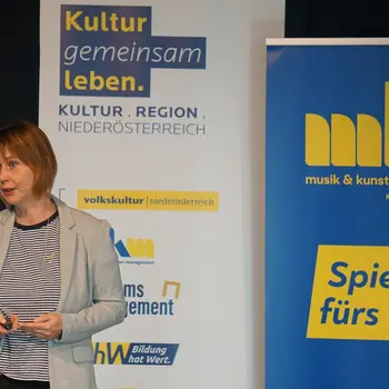 Der ebenfalls anwesende Geschäftsführer der Kultur.Region.Niederösterreich Martin Lammerhuber bedankte sich für den unermüdlichen Einsatz der Musikschulleiterinnen und -leiter und betonte, dass sie „jungen Menschen Ansprechperson sind, [sie ihre] Stimmen sowie Sehnsüchte hören und wahrnehmen und [ihnen] auch in unsicheren Zeiten Stabilität, Halt und Orientierung bieten können.“