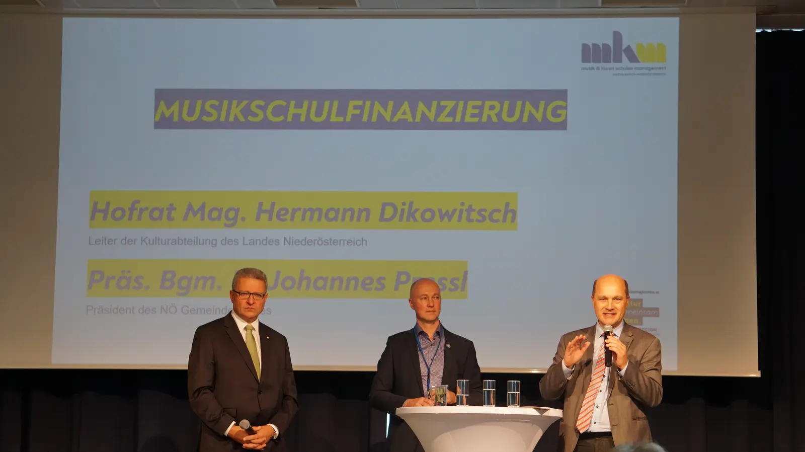 Einen Ausblick in die Zukunft des Musikschulwesens und seine Finanzierung boten Hofrat Mag. Hermann Dikowitsch, Leiter der Kulturabteilung des Landes Niederösterreich, und Bgm. DI Johannes Pressl, Präsident des NÖ Gemeindebundes.
