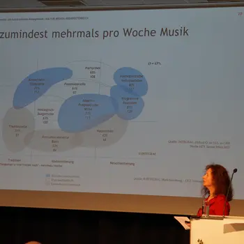Die deutsche Politikerin und Beraterin Diana Kinnert machte darauf aufmerksam, dass „die Pandemie, aber auch die vielen Krisen heutzutage die jungen Menschen und ihre mentale Gesundheit extrem beanspruchen“. Sie hob die Wichtigkeit sozialer Räume hervor, „in denen es um Vertrauen und Stabilität geht und wo Beziehungsarbeit gelingen kann“, die Betreuung in den Musikschulen führte sie hierfür als großes Vorbild an.