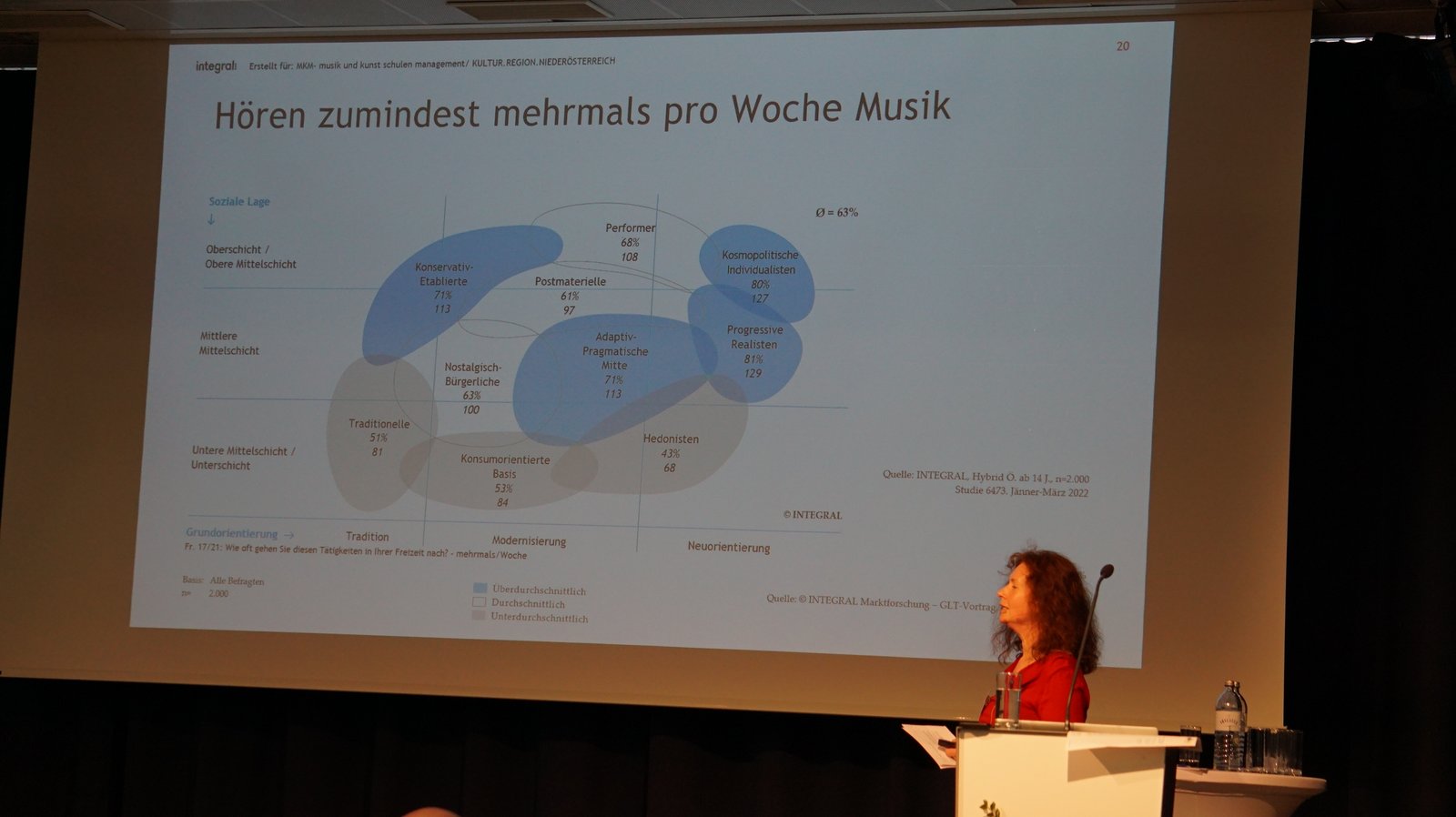 Die Referentin Mag. Monika Reichmann empfahl, sich „mit unterschiedlichen Erwartungen und Präferenzen der Generationen auseinanderzusetzen, da dies nicht nur für Führungskräfte in Unternehmen, sondern auch für Musikschulleiterinnen und -leiter wesentlich“ sei.