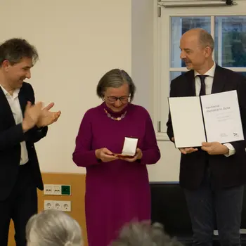 Im Rahmen der Buchvorstellung wurde die inzwischen pensionierte Alma Sauer für ihr Wirken an der mdw und vor allem die intensive Vorbereitung von einer Vielzahl von niederösterreichischen Klavierschülerinnen und -schülern auf Wettbewerbe wie „prima la musica“ bzw. auf ein Musikstudium mit der goldenen Verdienstmedaille der mdw gewürdigt.