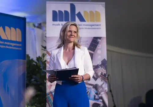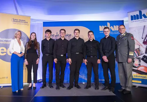 Mag. Dr. Maria Jenner, Bundesfachbeirätin Musik der Jugend, wies darauf hin, dass bei diesem Konzert die Spitze einer symbolischen Pyramide zu bewundern sei. Diese Spitze, so Jenner, könne nur durch eine breite Basis erreicht werden – in Niederösterreich bestehend aus rund 60.000 Musikschülerinnen und Musikschülern, die von 2.200 Musikschullehrenden auf hohem Niveau unterrichtet werden. Im Interview hob Sie den hohen Stellenwert der Kultur im Land Niederösterreich hervor.