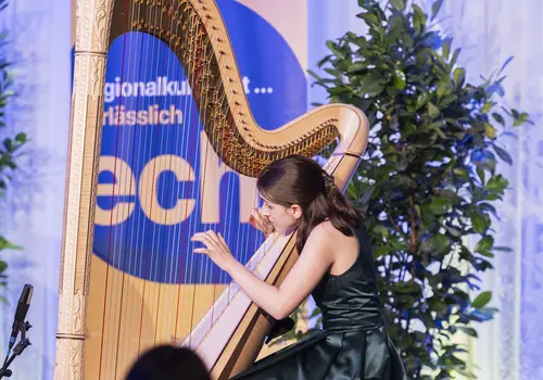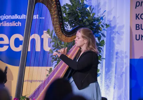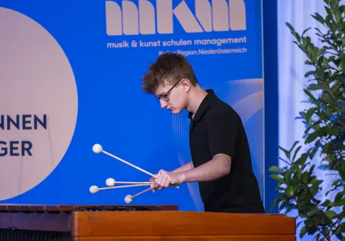 Der Abend begann kraftvoll mit einem Tango von Astor Piazzolla, dargeboten vom Duo DrumX2, Benedikt Wieser und Jakob Erdler, beide aus dem Musikschulverband der Region Wagram, Jakob Schwödiauer, Musikschulverband Behamberg-Ernsthofen-Haidershofen, beeindruckte mit seiner Fingerfertigkeit am Akkordeon, während die junge, privat unterrichtete Neulengbacher Sängerin Sophie Kendlbacher und die Harfinistin Barbara Karoline Gföllner, ehemals Franz Schmidt Musikschule/ Perchtoldsdorf das Publikum verzauberten. Berührend war die emotionale Interpretation von Franz Liszts „Liebestraum“ von Hannah Lammel aus Bad Vöslau.