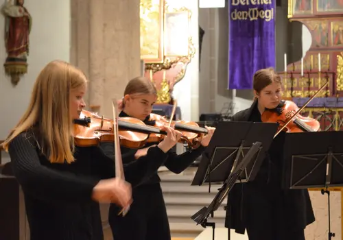 Das traditionelle Weihnachtskonzert, welches seit über 30 Jahren die Herzen des Publikums erwärmt. Die Schülerinnen und Schüler und Lehrkräfte gestalten mit besinnlicher Musik dieses Konzert am Nachmittag. Texte, gelesen von Schülerinnen und Schülern des Kunstfachs Schauspiel, sorgen für die richtige Einstimmung, der Musikschulchor erfüllt die Kirche mit vorweihnachtlichem Gesang.