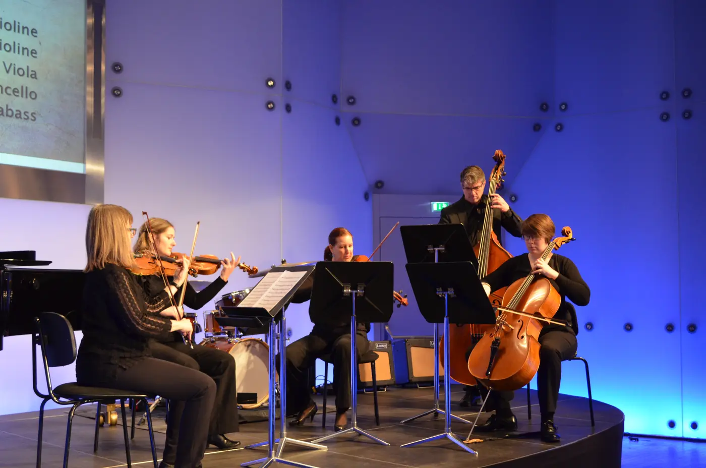 Foto: Lehrermatinee Streicher: v.l.n.r.: Marianne Vlcek, Claudia Eberle, Sonja Walther, Johann Kaar, Sera Ellis