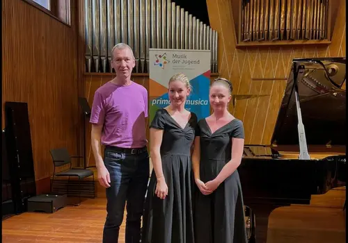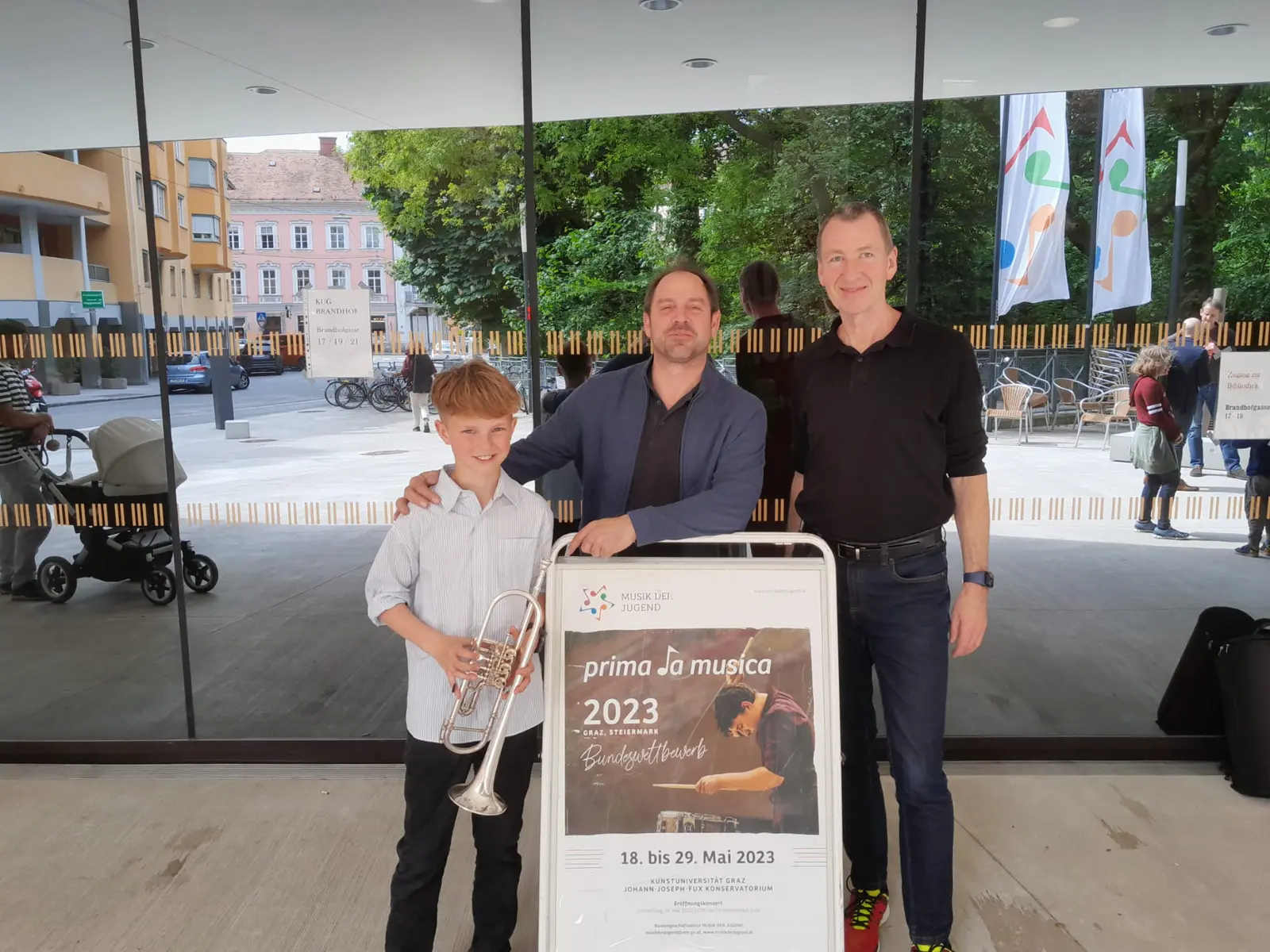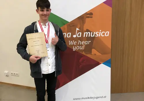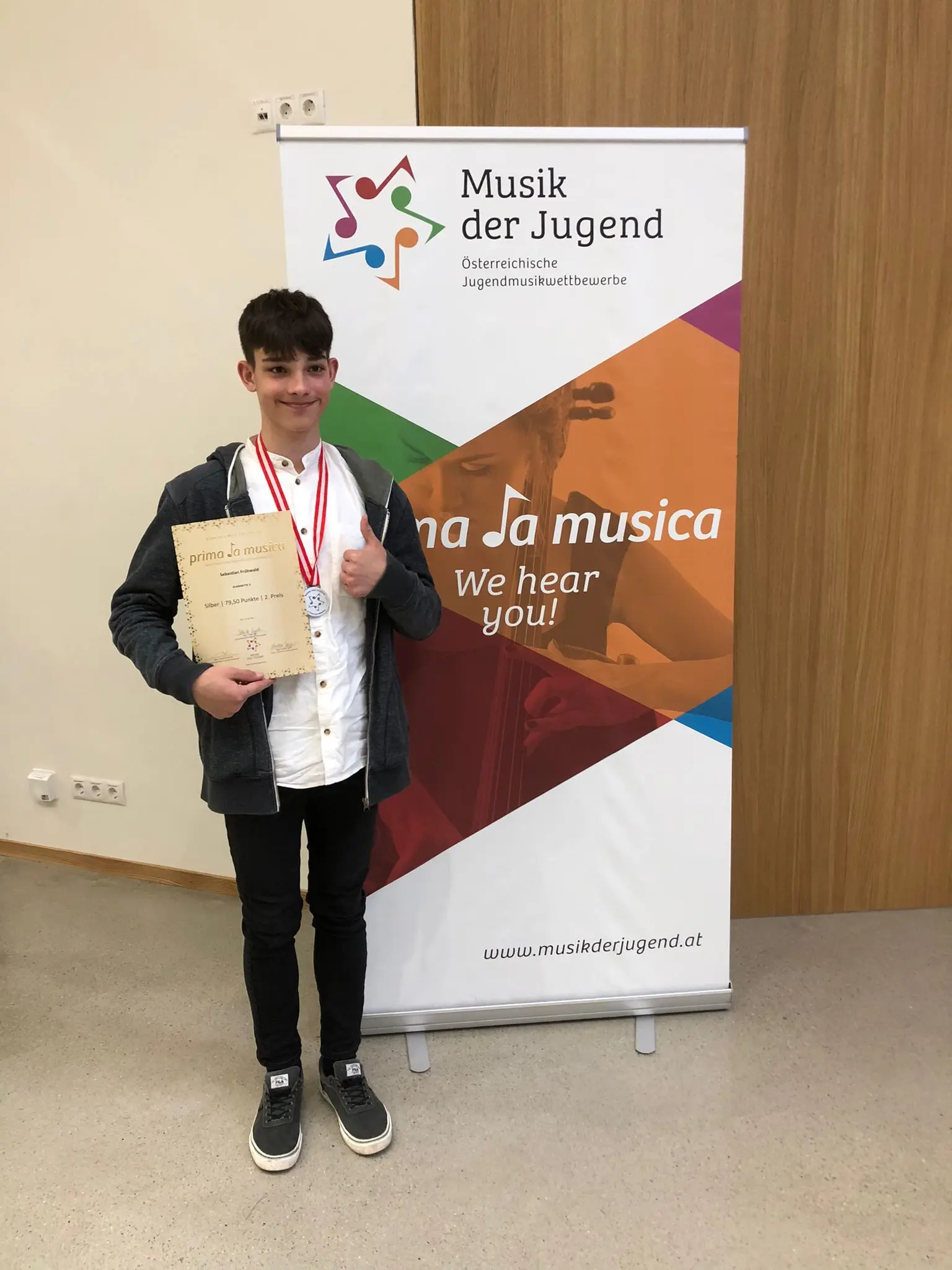 Drei Solisten und ein Ensemble durften aufgrund eines besonders guten Ergebnisses beim NÖ Landeswettbewerb nach Graz zum Bundeswettbewerb fahren. Auf die dort erbrachten Leistungen können die Teilnehmer:innen und deren Lehrkräfte durchaus stolz sein: das Gesangsensemble „ATrio“ Johanna Kerschbaumer, Florian Marcik, Amelie Schauppenlehner unter der Leitung von Julia Heigl erreicht mit ihrem Auftritt den 1. Preis/Gold. Sebastian Frühwald unter der Leitung von Thomas Maderthaner auf der Klarinette und Fabian Scholler unter der Leitung von Hermann Maderthaner auf Trompete erspielten sich einen 2. Preis/Silber. In der Kategorie Klavierkammermusik erreichte das Ensemble Klavierkammermusik zu vier Händen „Sophilia“ Emilia und Sophie Heim unter der Leitung von Christian Ecker den 3. Preis/Bronze.