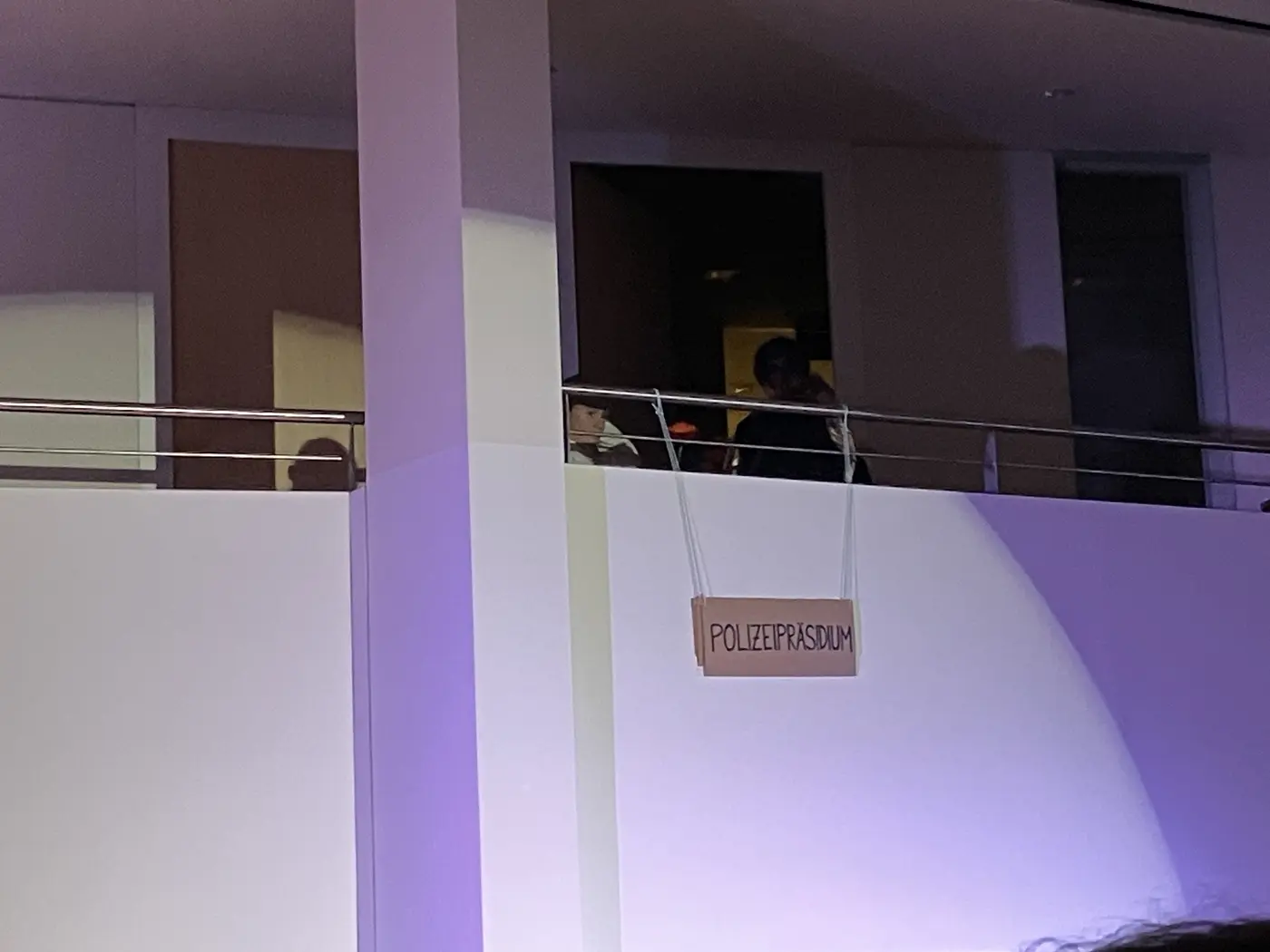 Das Stück wurde minimalistisch umgesetzt indem die Kinder die vorhandenen Stiegen bespielten und mit ein paar Sesseln, einem Tisch, Schildern und wechselnden Kostümen von Szene zu Szene wechselten und in unterschiedliche Rollen schlüpften. Begleitet wurden die Schauspielenden von einer Live Band, die einzelne Szenen/Aktionen vertonte und die Übergänge musikalisch begleitete mit Kontrabass, Klarinette, Blockflöte und Klavier mit Musik von Clemens Schaller. Abgerundet wurde das Ganze durch stimmige Beleuchtung.