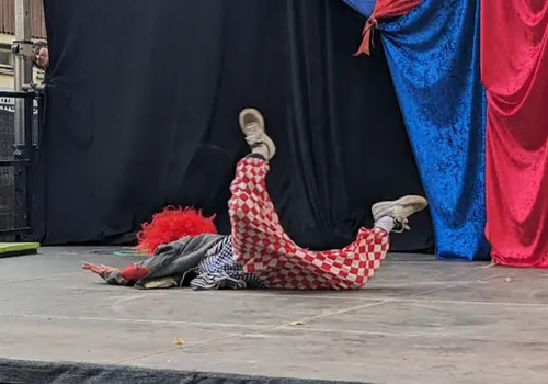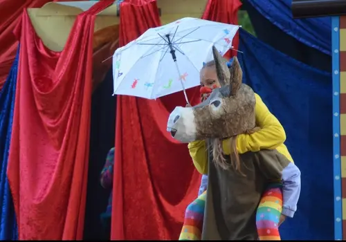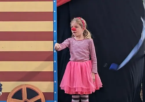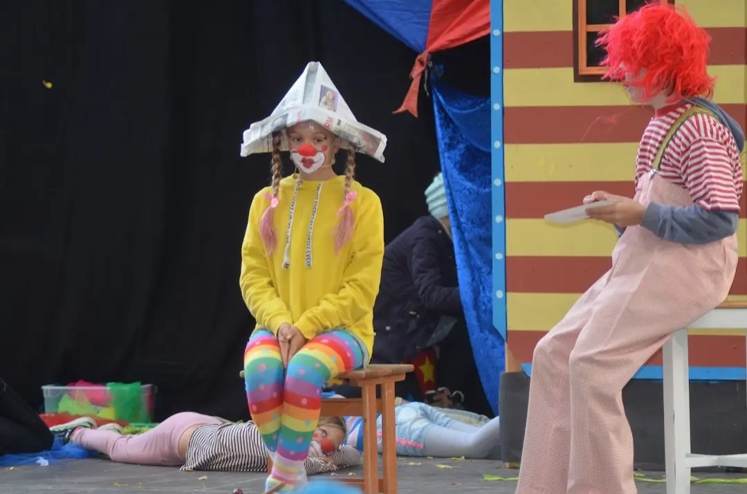 Die spielfreudigen Kinder der Schauspielakademie KIDS Wolkersdorf ließen sich von den unbeständigen Wetterverhältnisse nicht abhalten und zeigten unter der Leitung von Steffi Neid und Aurelia Burckhardt ihr Können bei den Aufführungen am Sa 12. und So 13. Oktober 2024 im Hof des Schlosses Wolkersdorf. Beim bunten und lustigen Zirkusstück „Die dumme Augustine“, frei nach Otfried Preußler, konnten die Kinder nicht nur ihr schauspielerisches Talent unter Beweis stellen, sondern auch ihre artistischen Fähigkeiten. Das zahlreiche Publikum war restlos begeistert und spendete viel Applaus.