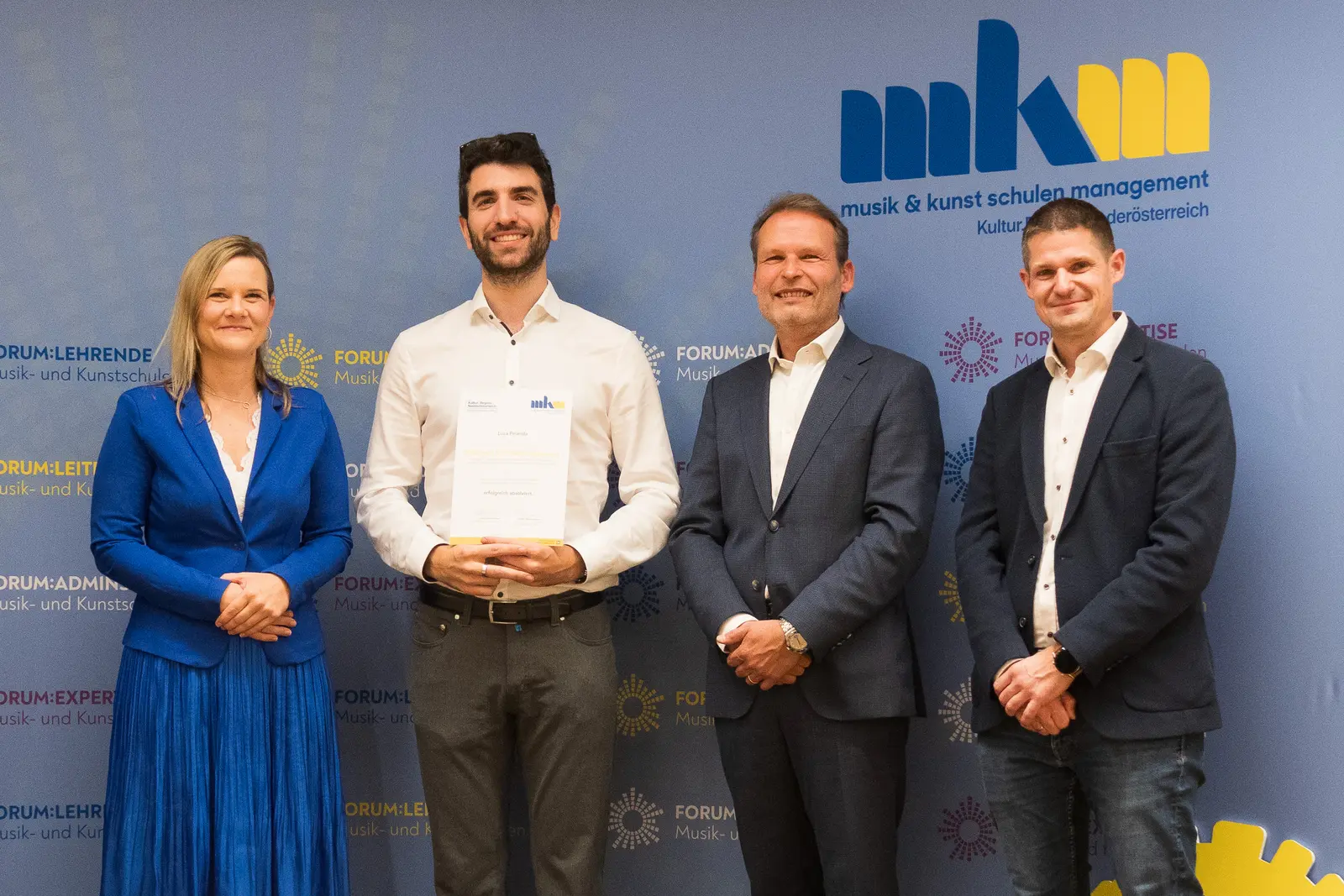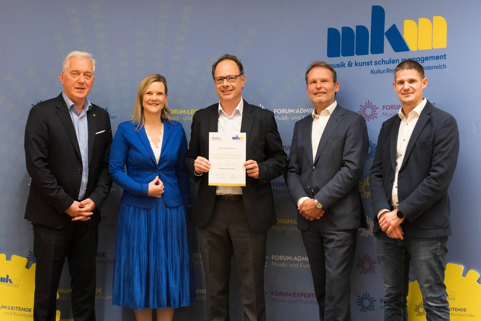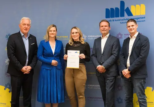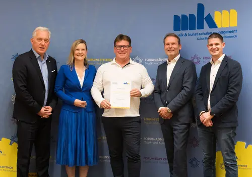 Der Lehrgang für Musikschulleitende wird seit dem Jahr 2004 angeboten und nun konnte auch der 200. Absolvent der FORUM:LEITENDE Akademie – Martin Fischer, Leiter der Musikschule Fladnitztal – sein Abschlusszertifikat entgegennehmen.