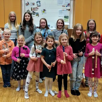 Am Do 14. März 2024 fand im Musikerheim Langau der Klassenabend der Blockflöten- und KlarinettenschülerInnen von Marlene Bayer statt. Diesmal präsentierten die 17 Schülerinnen und Schüler alle gemeinsam die Geschichte vom Flötenclown, der seinen Freund Old Mac Donald besucht, Reiten lernt, und noch vieles mehr erlebt.