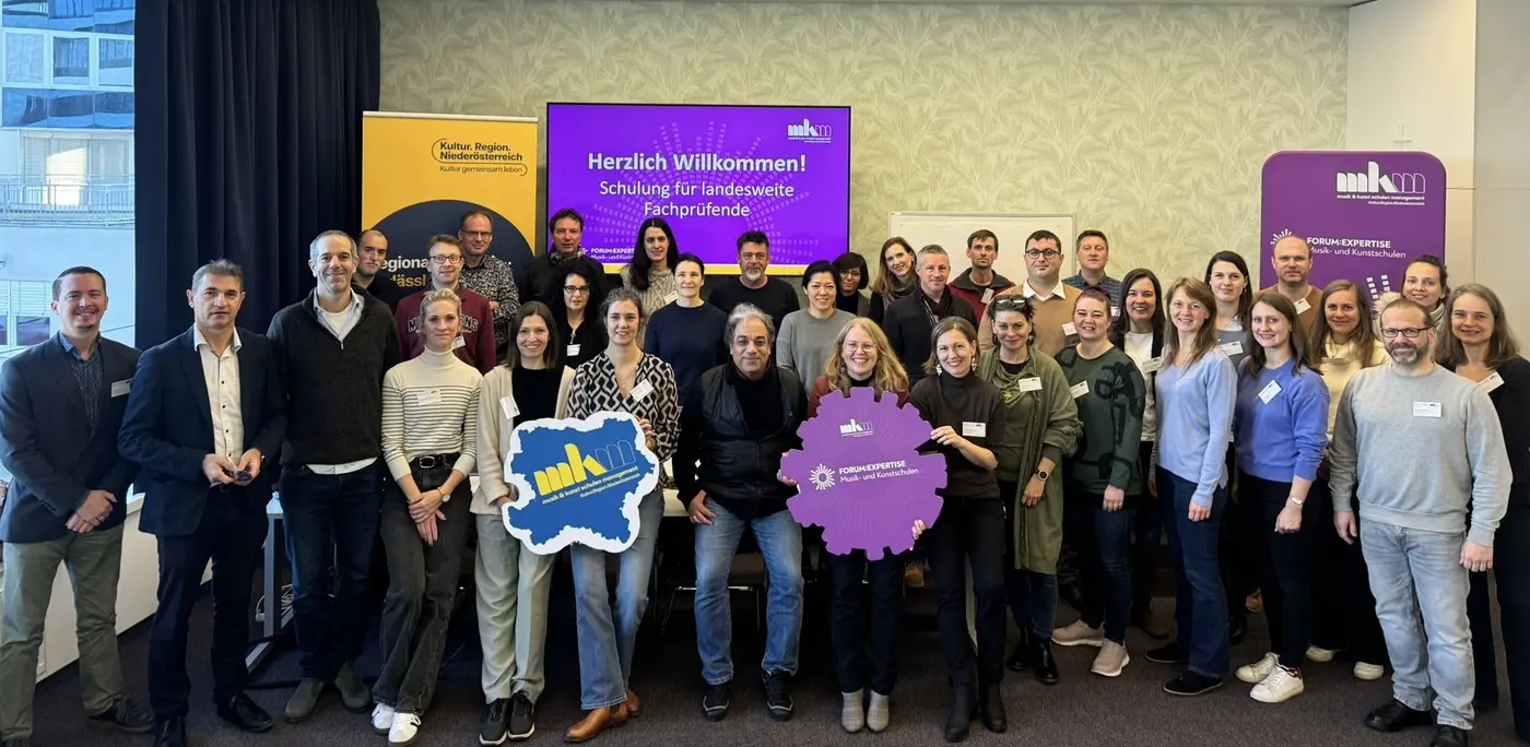 Unter dem Motto „Prüfungen am PULS der Zeit - und morgen!“ startete mit großem Erfolg und Zuspruch seitens der Musikschullehrenden das FORUM:EXPERTISE die erste Schulung für landesweite Fachprüfende Niederösterreich. 36 Teilnehmende aus verschiedenen Fachgruppen haben sich am Sa 23. November 2024 zur intensiven und angeregten Diskussion im MKM Musik & Kunst Schulen Management Niederösterreich getroffen.