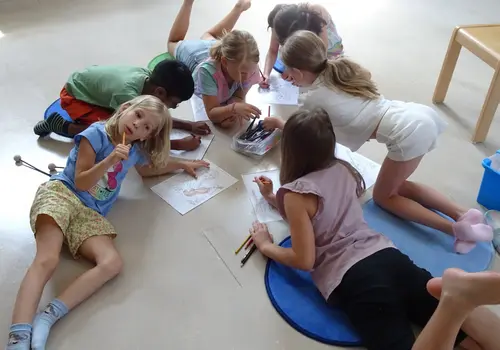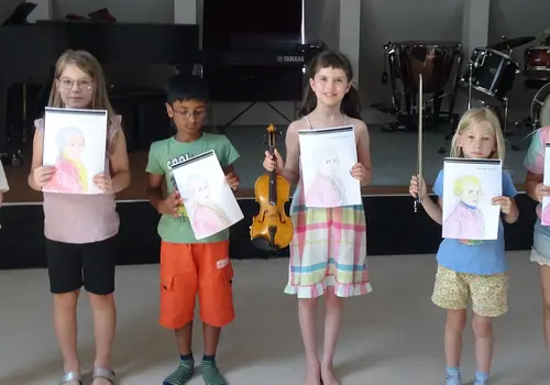 Es wurde zur Musik gemalt, dabei konnte man Bekanntschaft mit verschiedenen Komponisten schließen, es wurde aus voller Kehle gesungen. Bewegung durfte in der Freizeit selbstverständlich auch nicht fehlen. Und alle diejenigen, die ein Musikinstrument lernen, konnten es mitbringen und durften zeigen, was sie können. Mit einem Wort – Musik mit all seinen Facetten!