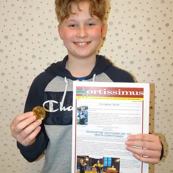 Direktor Peter Vasicek erzählt: „ So oft wie möglich versuchen wir, das Lernen spielerisch zu vermitteln.“ So auch bei der Musikschulzeitschrift. Diese bietet nicht nur einen bebilderten Überblick über sämtliche Musikschulaktivitäten, sondern lockt auch mit einem Preisrätsel. Schüler:innen sind aufgefordert, das jeweilige Rätsel, das musikalisches Wissen erfordert, zu lösen und den Abschnitt mit der Antwort in die Rätselbox einzuwerfen. Drei Gewinner:innen werden dann gezogen. Und – wenn die Antwort richtig ist – dann gibt’s die Belohnung. Die Gitarreschülerin Sarah, die Geigenschülerin Emma und der Schlagwerkschüler Michael sind dieses Mal die glücklichen Gewinner:innen. Sie können sich über eine Korneuburger Einkaufsmünze freuen. Gratulation!