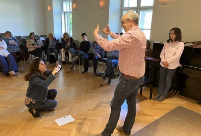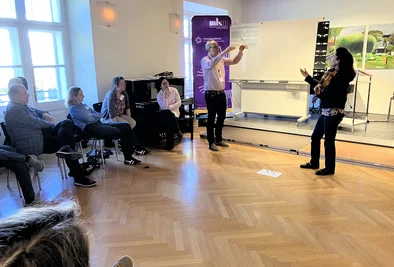 Am Samstag, 25. April 2026 fand im Rahmen des Formats FORUM:EXPERTISE | Fachgruppen im Dialog der Tag der Streichinstrumente in der Franz Schmidt-Musikschule in Perchtoldsdorf statt. Die Fachgruppe Streichinstrumente tauchte am Vormittag mit Prof. Hauko Wessel von der Hochschule Osnabrück in die Relative Solmisation ein und diskutierte die Themen Prüfungen und Nachwuchsarbeit. Am Nachmittag stand mit Edwin Cáceres-Peñuela das Jugendstreichorchester im Fokus sowie der Literaturaustausch für Ensemble- und Orchesterbesetzungen. Wir bedanken uns bei den Teilnehmenden für die regen Diskussionen und den guten Austausch! Ganz besonderen Dank auch an Maria Jenner, Direktorin der Franz Schmidt-Musikschule, für die Zurverfügungstellung der Räumlichkeiten!