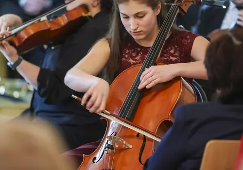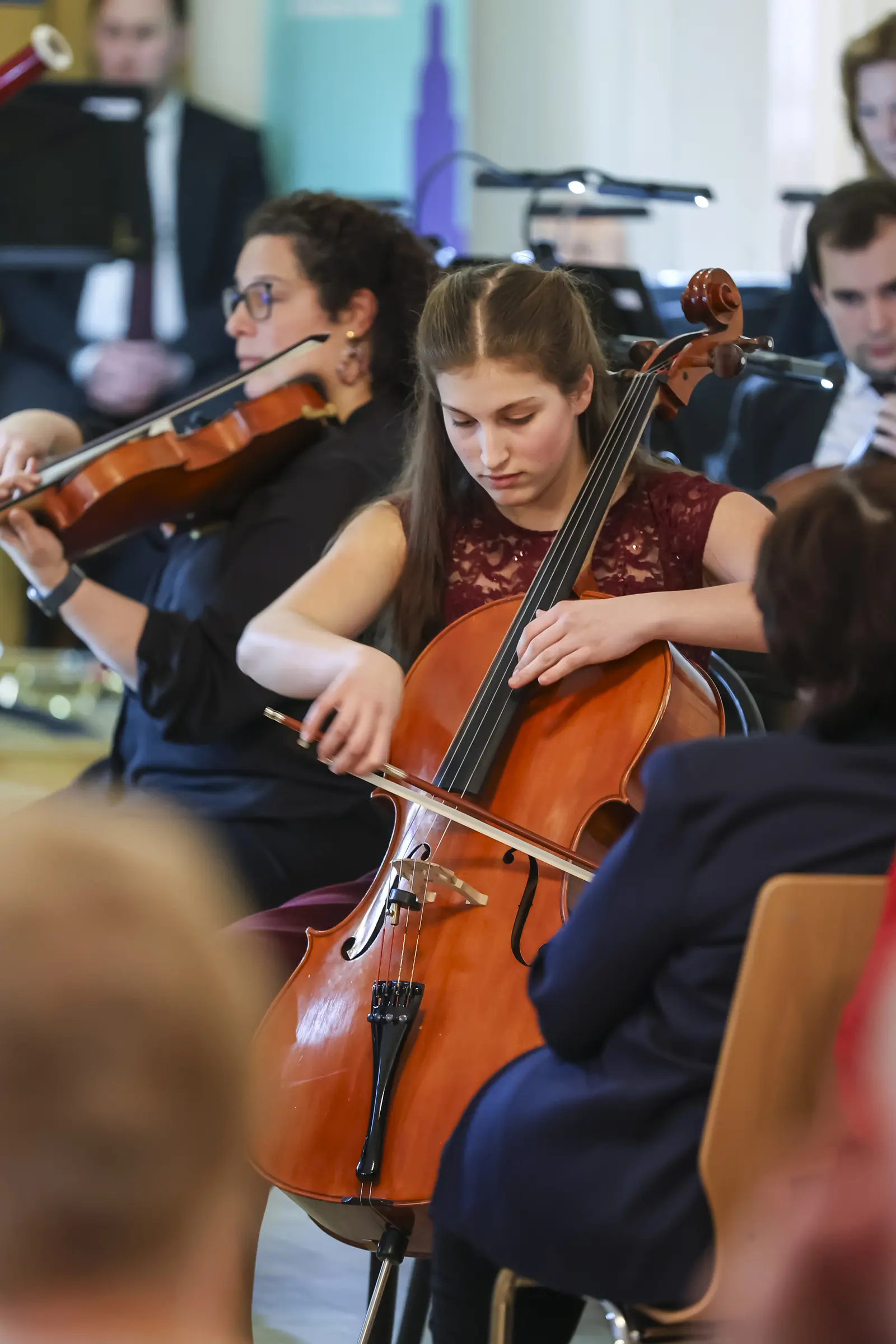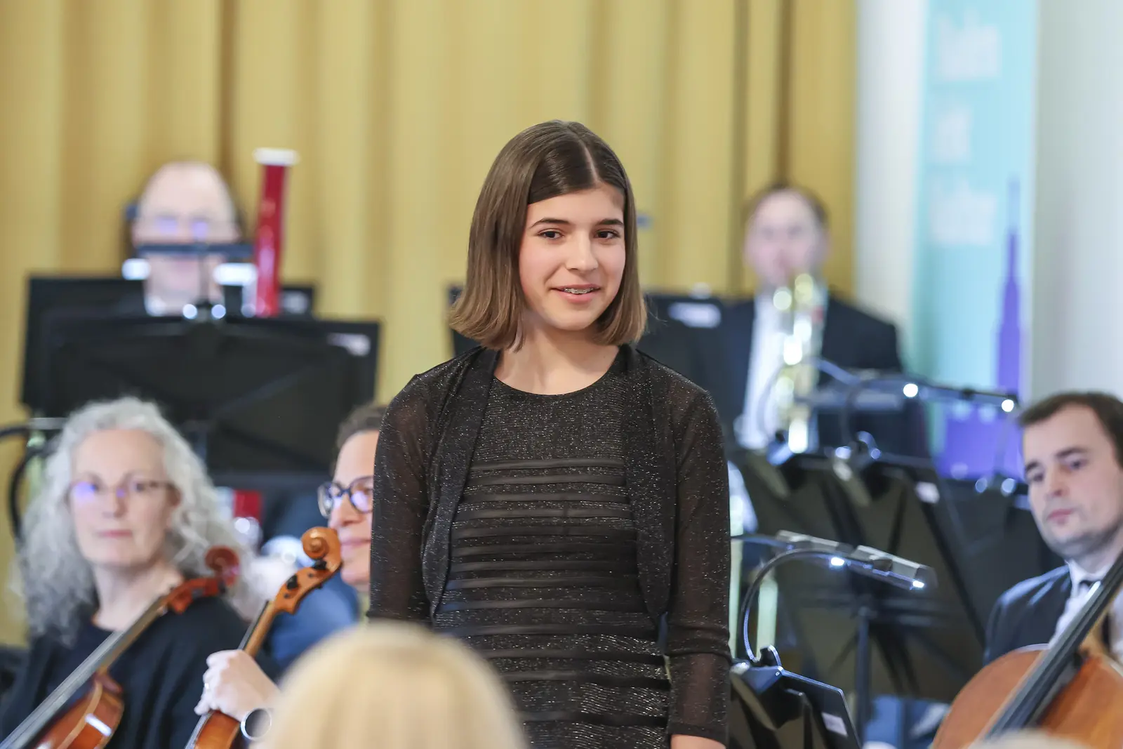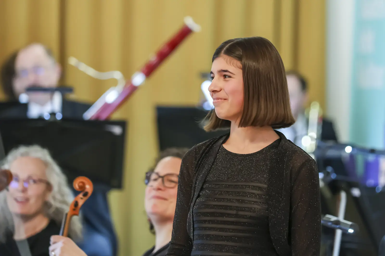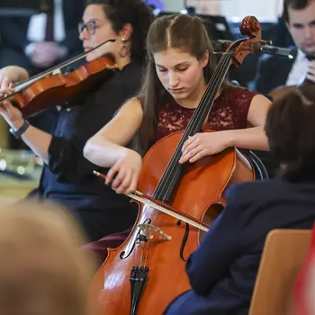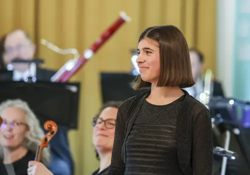 Die Cellistin Marlene Hoffmann aus dem Musikschulverband der Leitha-Steinfeld-Gemeinden (Klasse Nicole Peña Comas) überzeugte mit einer ausdrucksstarken Interpretation des Allegro Appassionato op. 43 von Camille Saint-Saëns. Mit souveräner Technik und feinem Gespür für die Musik begeisterte die 14-Jährige das Publikum.
