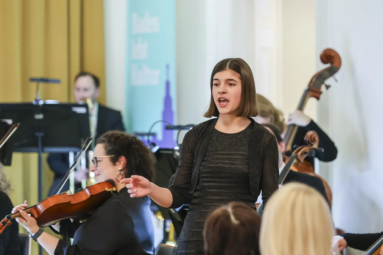 Zwischen den solistischen Darbietungen spielte das Orchester der Bühne Baden ein abwechslungsreiches Programm. Ergänzt wurde das Konzert durch kurze Interviews mit den jungen Talenten, die von Michael Zehetner geführt wurden und dem Abend eine lebendige, dynamische Note verliehen.