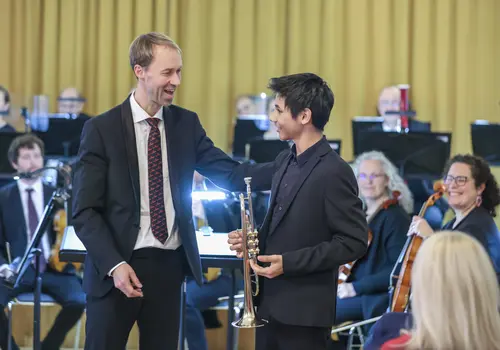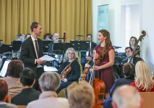 Vergangenen Samstag bot sich drei jungen Musikerinnen und Musikern eine einzigartige Gelegenheit: Sie durften mit dem Orchester der Bühne Baden unter der Leitung von Michael Zehetner musizieren und ihr Können in einem professionellen Umfeld präsentieren.