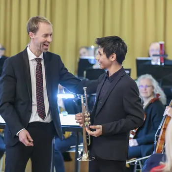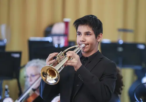Der 14-jährige Trompeter Antonio Fohringer-Huber aus dem Musikschulverband Maria Anzbach-Eichgraben (Klasse Peter Vami) begeisterte das Publikum mit dem zweiten Satz (Andante) aus dem Konzert für Trompete in Es-Dur von Joseph Haydn. Mit strahlenden Klängen und beeindruckender Musikalität stellte er sein Talent eindrucksvoll unter Beweis.