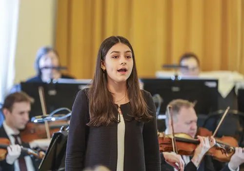 Gemeinsam mit dem Orchester der Bühne Baden begeisterten die beiden Solisten das Publikum und sorgten für große Anerkennung im Saal. Dirigent Victor Petrov entlockte den jungen Künstlerinnen und Künstlern während des Konzerts auch einige persönliche Einblicke in ihre musikalische Entwicklung und ihre Liebe zur Musik.