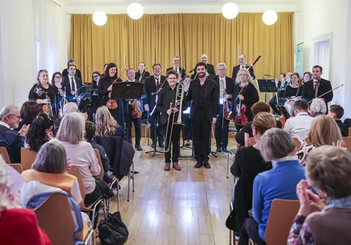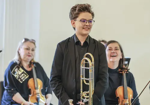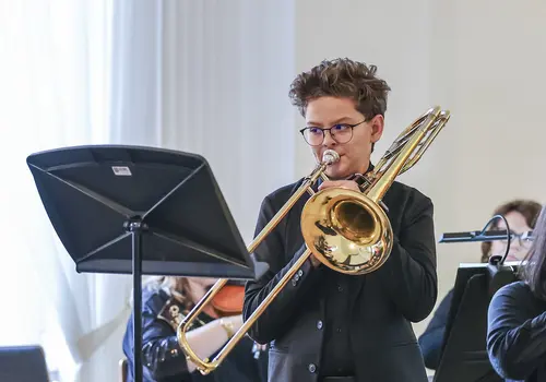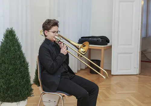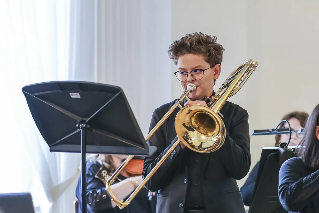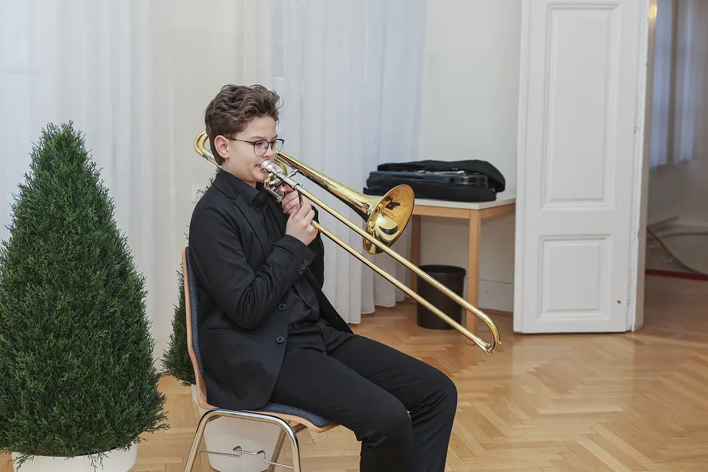 Auch der junge Posaunist Paul Winter von der Musikschule Eggenburg beeindruckte mit seinem musikalischen Können. Er ist Landessieger von prima la musica (2025) und gewann zudem einen 1. Preis beim Bundeswettbewerb prima la musica (2025). Bei diesem Konzert spielte er das „Concertino“ von Ernst Sachse sowie eine „Berühmte Arie“ von Ernst Plaudert.