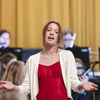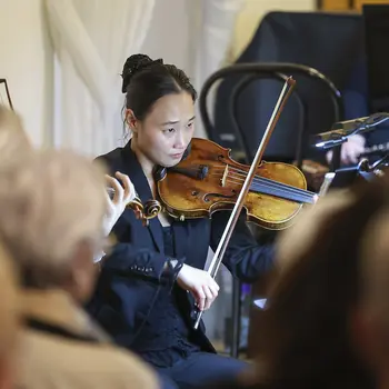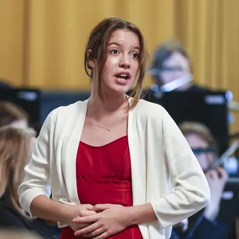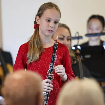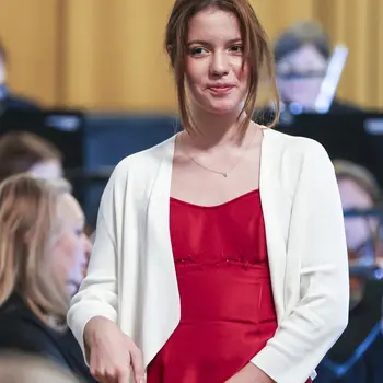 Die vier Solistinnen überzeugten jeweils mit eigenen musikalischen Stil. Raphaella Steinmetz (Harfe) eröffnete mit Vivaldis D-Dur-Konzert, gefolgt von Hana Hlinkovás Haydn Andante auf der Oboe. Laura Droppová gestaltete Lalos Symphonie Espagnole auf der Violine und Nele Fiege Interpretation aus My Fair Lady rundete das Programm charmant ab.