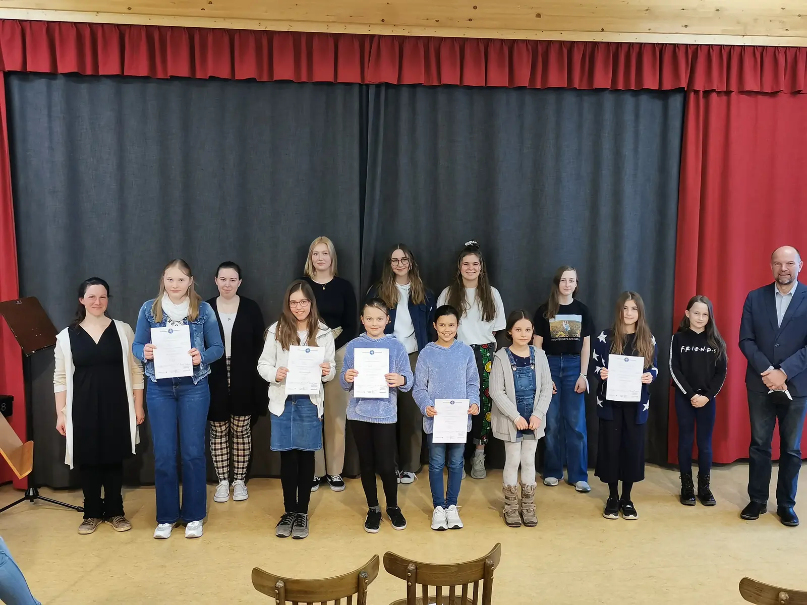 Eine bunte Mischung aus Musical, Pop, Soul und Jazz gab es beim Gesangsklassenabend der Musikschule Thayatal in Oberndorf/Raabs am 2.4.2022 zu hören. Fünf Schülerinnen (Valentina Auer, Lisa Dworan, Nora Forster, Franziska Schaumberger und Marijam Trabelsi) absolvierten im Rahmen des Klassenabends die erste Übertrittsprüfung. Mit zahlreichen Duetten und mehrstimmigen Stücken zeigten die Gesangsschülerinnen neben ihrem gesanglichen Können auch Musikalität und Freude am gemeinsamen Musizieren.