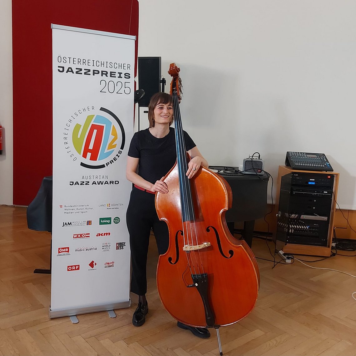Helene Glüxam lernte als Jugendliche E-Bass bei Volker Wadauer an der Musikschule Wienerwald Mitte und war auch lange Zeit Mitglied der „Vienna Forest Folk Band“. Seit 2024 unterrichtet sie an der Musikschule das Fach Kontrabass (Klassik und Jazz) und ist freiberuflich als Kontrabassistin und Komponistin tätig. In ihrem Soloprojekt rückt sie den Kontrast von tieftönendem Bass und hoher Stimme ins Zentrum, wofür sie 2025/26 in das Förderprogramm NASOM (The New Austrian Sound of Music) aufgenommen wurde. Sie kombiniert minimalistische Orchestrierung mit unkonventionellen Spieltechniken und entwickelt so eine persönliche Klangsprache zwischen Jazz, Improvisation und eingängigen Songformen. Solo-Konzerte führten sie u. a. ins Porgy & Bess, Radiokulturhaus und Musikverein Wien sowie zu internationalen Festivals in Deutschland, der Slowakei, Kasachstan und Usbekistan. Sie ist außerdem Mitglied von Kurdophone (u. a. Elbphilharmonie Hamburg), dem Lizard Ensemble und dem Wednesday Night Prayer Orchestra. 2026 erscheint ihr Solo-Debütalbum. Die Preisverleihung des österreichischen Jazzpreises 2025 wird am 26. November 2025 im Casino Velden stattfinden und kann live auf Ö1 und ORF on gestreamt werden.