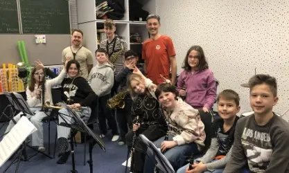 In der Musikschule der Korneuburger Musikfreunde trafen sich jüngere und ältere bzw. ehemalige Schüler und Schülerinnen, um mit der Lehrkraft Raimund Aichinger das Improvisieren zu üben.