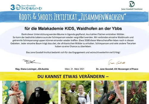 Am 21. März wurde der internationale Tag des Waldes gefeiert, den die Malakademie KIDS auch heuer wieder zum Anlass nahm, um auf die Bedeutung des Waldes im Rahmen der Aktion von Jane Godall "Roots & Shoots" aufmerksam zu machen.