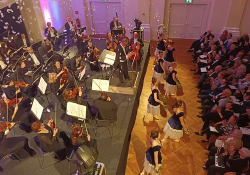Fehlen durften nicht die Überraschungseinlagen der Schüler:innen der Musikschule der Korneuburger Musikfreunde. So tanzten Schüler:innen unter der Leitung von Elizabeth Mills zur Annenpolka und steppten zu Auf der Jagd. Schlagwerkschüler:innen unter der Leitung des Musikschuldirektors Peter Vasicek marschierten in den Saal und schlugen den Radetzkymarsch ein. Die Freude war nicht nur beim Publikum groß. Auch die Schüler:innen konnten sich freuen, ist es doch nicht selbstverständlich, mit einem Berufsorchester aufzutreten. Alles in allem – ein gelungener Silvesterabend mit bester Stimmung und begeistertem Publikum!
