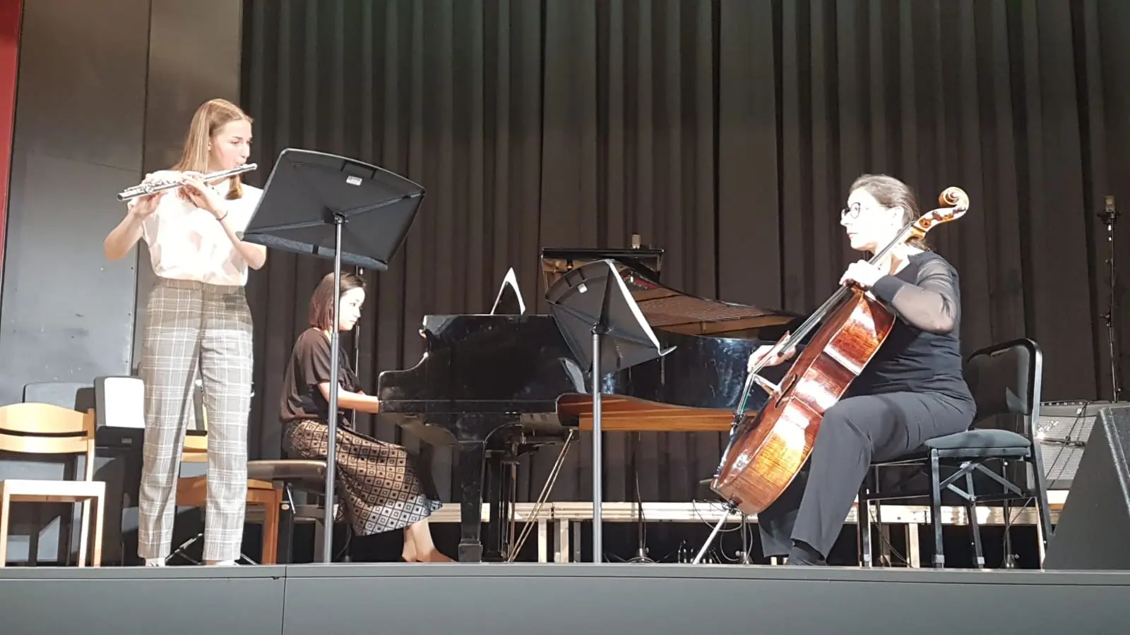 Dargeboten wurden die Stücke im ersten Teil des Konzerts von Schülerinnen und Schülern der Musikschule. Im zweiten Teil standen die Lehrenden, die sich selbst zu verschiedenen Ensembles zusammengefunden haben, auf der Bühne.