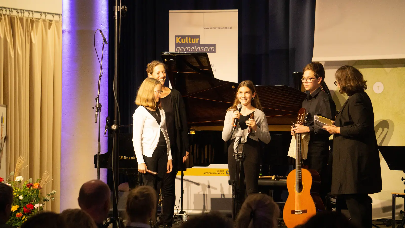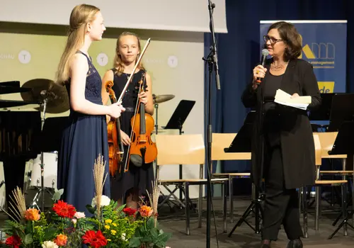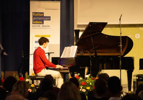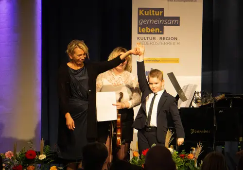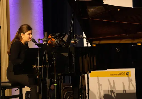 Michaela Hahn, die Geschäftsführerin des Musik & Kunst Schulen Management Niederösterreich, zeigte sich erfreut darüber, dass gleichermaßen junge wie erfahrene Musikschülerinnen und -schüler den Abend mit ihren verschiedensten Kompositionen gestalteten. Denn „diese jungen Komponistinnen und Komponisten stellen eine Bereicherung für die niederösterreichische Musik(schul)landschaft dar und zeigen, was für Talente in den jungen Musikerinnen und Musikern stecken.“