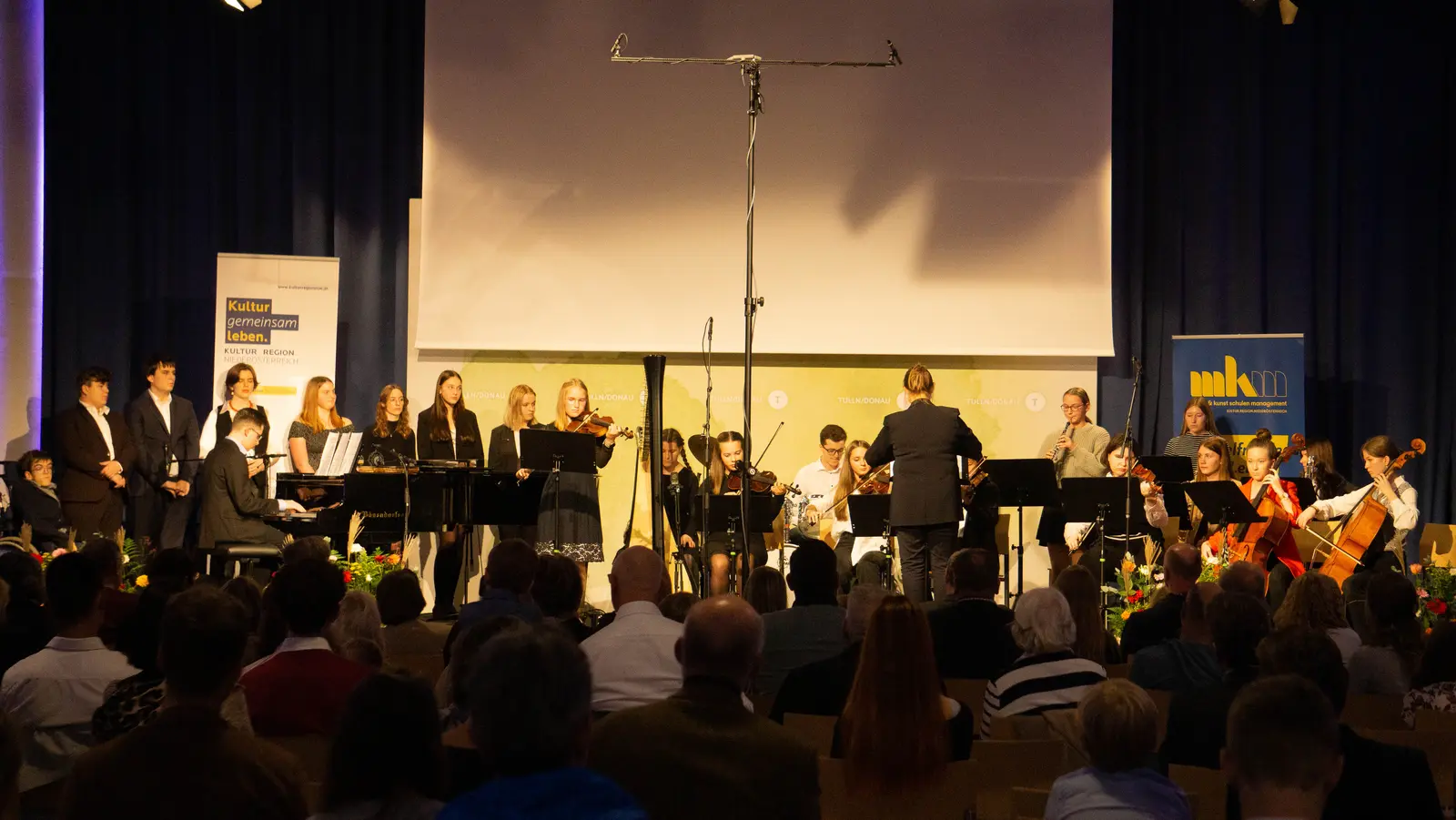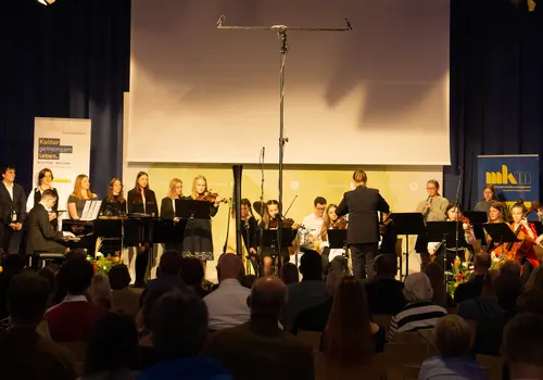 Am Sa 5. November 2022 begeisterten 25 junge Komponistinnen und Komponisten & 60 Musikerinnen und Musiker der Musikschulen Niederösterreichs und des BORG Scheibbs beim Konzert #Young Composers in Concert im Atrium Tulln rund 200 Zuhörerinnen und Zuhörer mit ihren vielfältigen Kompositionen.