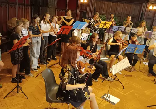 Die musikalischen Beiträge der einzelnen Ensembles waren hochwertig. Zum Abschluss fanden sich ALLE zu einem Orchester zusammen und verabschiedeten sich mit den Ohrwürmern PIRATES OF THE CARIBBEAN von K. Badelt und dem berühmten WALZER von D. Schostakowitsch.