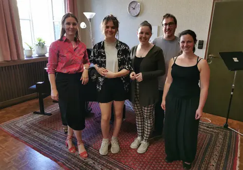 Weiters fanden am Sa 11. Juni Übertrittsprüfungen im Fach Gesang von den Gesangsschülerinnen Sophie Schöls (Bronze) und Lena Reiß (Silber) statt, die als Gäste den Prüfungstag in Horn ergänzten. Den Vorsitz übernahmen: der Musikschulleiter Harald Schuh, Fachprüferin Elisabeth Schlee, der Korrepetitor Christoph Eberhardt und die Fachlehrerin Katharina Tschakert.