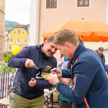 Foto6: Bgm. Werner Krammer bäckt „Schmiedewaffeln“ bei Thomas Hochstädt