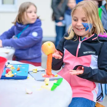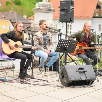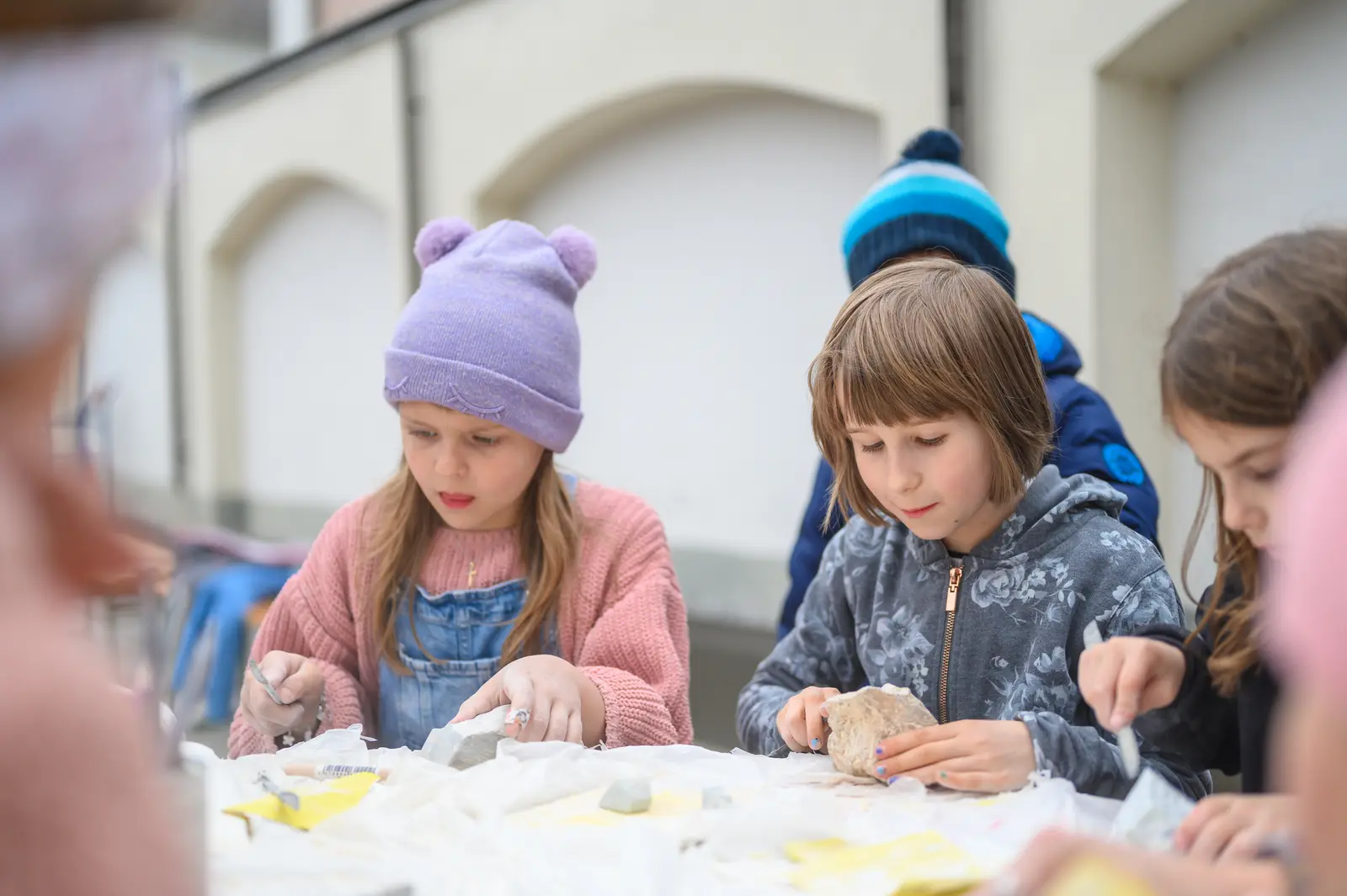 Bei der langen Einkaufsnacht am Fr 12. Mai 2023 in Waidhofen/Ybbs lud die Musik- und Kunstschule Waidhofen/Ybbstal zum „Kunstfest ins Kreativhaus“, welches zum Treffpunkt für Jung und Alt wurde. Ein breitgefächertes Unterhaltungsangebot lockte zahlreiche Besucher:innen an. Familien und Kunstinteressierte hatten die Möglichkeit, Kunst zu betrachten, zu erleben und selbst mitzugestalten. Beim Erkunden des Kreativhaus begegnete man Kunstwerken der Kunstfächer Bildhauerei (Ltg. Eva Pöchhacker), Fotografie (Ltg. Friedrich Bachner), Malen & Design (Ltg. Sabine Haider) und Schmieden (Ltg. Nikolaus Frühwirt und Thomas Hochstädt). Von den Fachlehrer:innen jedes Kunstfachs wurden Workshops vor Ort angeboten: Man konnte Gemüse-Skulpturen schnitzen, Oblaten selber bemalen und anschließend essen oder frisch zubereitete Waffeln aus dem historischen Waffeleisen verköstigen. Um das bunte Programm abzurunden, gab es Streetdance-Einlagen der Tanzklasse von Maria Blahous und Einblicke der Schauspielklasse, geleitet von Uschi Nocchieri, wurden inmitten der Passant:innen geboten. Nebenher konnte man sich mit angebotenen Getränken und Brötchen versorgen, welche sich am besten bei der Live-Performance von der Waidhofner Band „The Riversides“ genießen ließ.