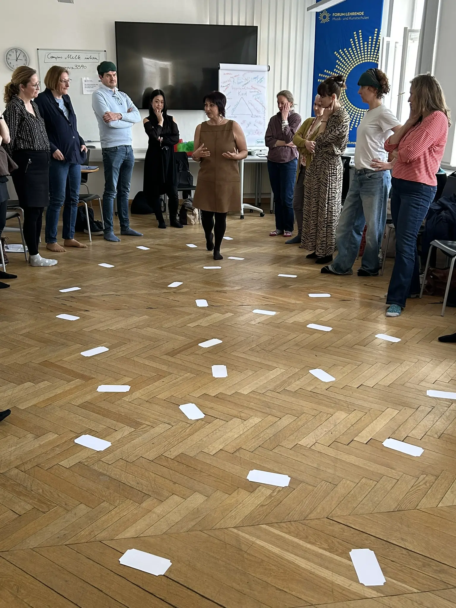Im inspirierenden Ambiente des PH NÖ Campus Melk startete am Mo 9. März 2026 der neue Lehrgang Pädagogik – Die Kunst des Lehrens mit seinem ersten Modul. Der Lehrgang richtet sich an Musikerinnen, Musiker und Kunstschaffende, die pädagogisches Grundwissen zur frühkindlichen Bildung im Gruppenunterricht erwerben oder vertiefen möchten, ein idealer Einstieg in das Musik- und Kunstschulwesen NÖ. Unter den Teilnehmenden befinden sich 18 kreative Köpfe aus den Kreativakademien und Musikschulen NÖ. Die Gruppe bringt nicht nur eine beeindruckende Vielfalt an Fachrichtungen aus den bildnerischen und darstellenden Künsten sowie der Instrumentalmusik mit, sondern auch Offenheit, Neugierde, Begeisterung und vor allem Freude am gemeinsamen Tun. Im Mittelpunkt des ersten Moduls standen Themen wie Gruppe, Gemeinschaft und Beziehungen, begleitet von Lehrgangsleiterin Christina Foramitti. Am Nachmittag öffnete Johannes Bohun spielerisch den Raum für Körperklang und Rhythmus. Mit Stimme, Body Percussion und viel Humor fand die Gruppe hier im gemeinsamen Puls zusammen. Der Lehrgang führt über zwei weitere Lehrgangswochenenden im März und April, ein Online-Modul im Mai sowie die Hospitationen bis zum Abschluss Mitte Juni. Zum Finale erwarten uns sechs kreative und abwechslungsreiche Abschlusspräsentationen, die Vorfreude darauf ist bereits jetzt sehr groß.