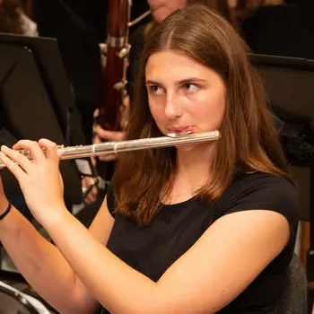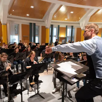 Das Publikum darf sich auf ein abwechslungsreiches Programm freuen, das Werke wie Paul Dukas' „Fanfare pour précéder La Péri“ und Johann Sebastian Bachs „In dulci jubilo“ (arrangiert von M. Rechtman) umfasst. Weitere Höhepunkte sind Philip Sparkes „Invictus“, James Barnes’ bewegende „Third Symphony, 'The Tragic'“ (mit den Sätzen „Für Natalie“ und „Allegro giocoso“) und Alfred Reeds „The Hounds of Spring“. Mit Auszügen aus dem Musical „Chess“ von B. Ulvaeus und B. Andersson (arrangiert von Johan de Meij) sowie Paul Hindemiths „Symphonische Metamorphosen“ (4. Satz „Marsch“) erwartet die Zuhörer ein Fest der sinfonischen Bläsermusik.