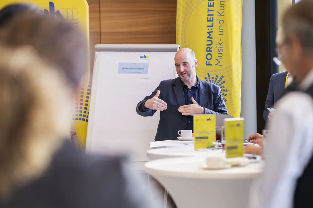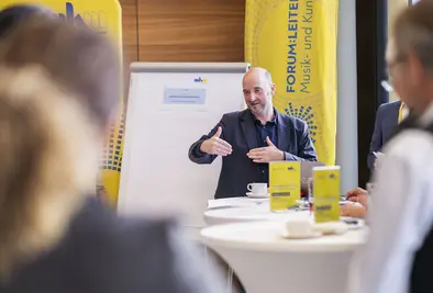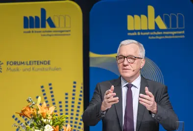 In seiner Keynote übertrug er das „Crew Ressource Management“ der Luftfahrt auf das Musikschulwesen: “Wir brauchen Mut zu Veränderungen und Entscheidungen. Wir haben oft Angst vor einem Fehler, aber was passiert, wenn ich nichts tue? Passivsein, Stillstand ist immer das Schlechteste, was wir tun können.”