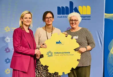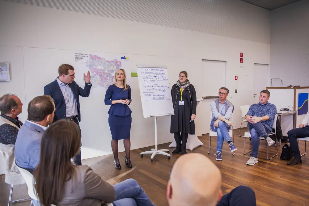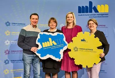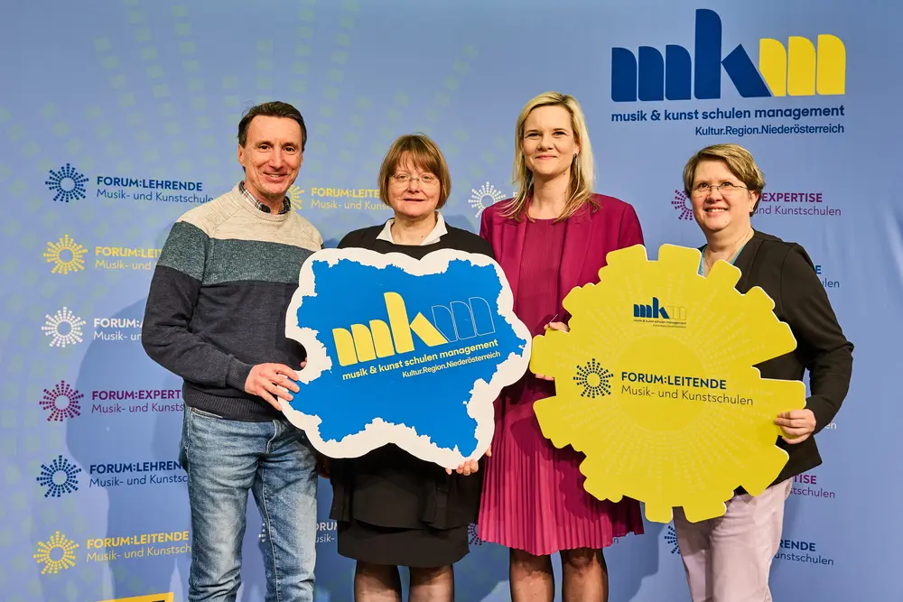 Dem schloss sich Tamara Ofenauer-Haas, die operative Geschäftsführerin des MKM NÖ, an: „Seit fast genau einem Jahr ist die Musikschullandschaft in Bewegung und es wird so viel wie noch nie über Musikschulentwicklung, Zieldimensionen im Musikschulwesen, Finanzierung und Verwaltung und Organisation gesprochen, wie in den letzten 365 Tagen. Eine sehr herausfordernde Veränderung, gerade für die Führungskräfte im Musikschulwesen – den Leitenden, die gerade in dieser Reorganisationsphase der Musikschulen hier viel Verantwortung für das Musikschulwesen tragen. Gemeinsam mit dem MKM NÖ werden in Beratungsgesprächen direkt vor Ort Perspektiven entwickelt und gemeinsam an der Zukunft der Musikschulen gearbeitet.“