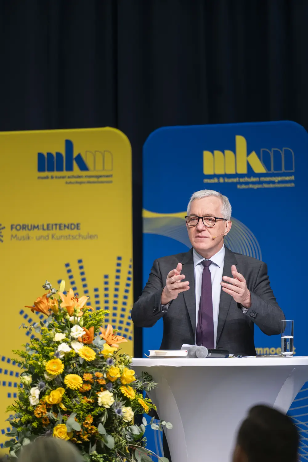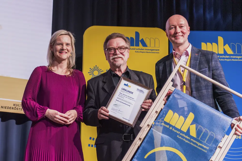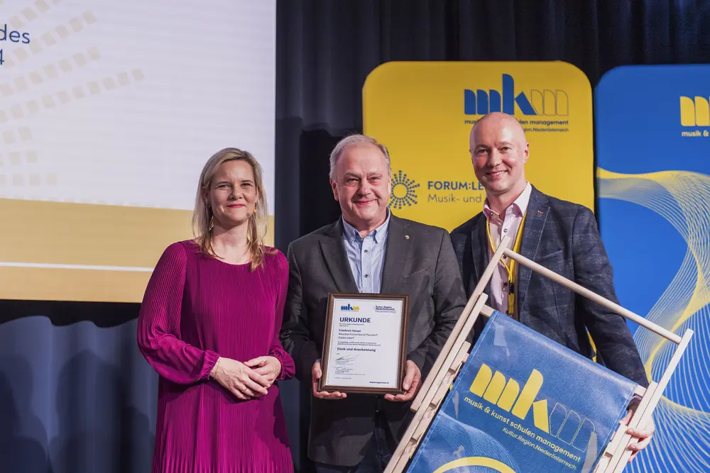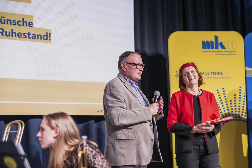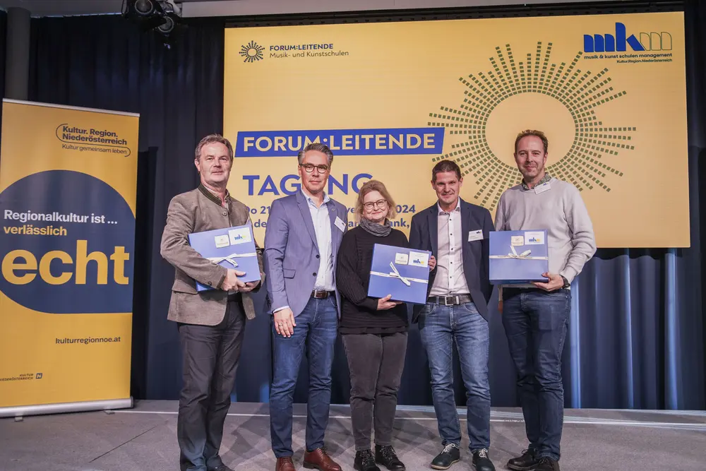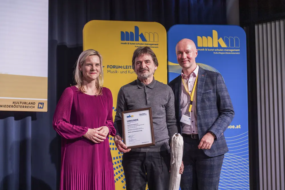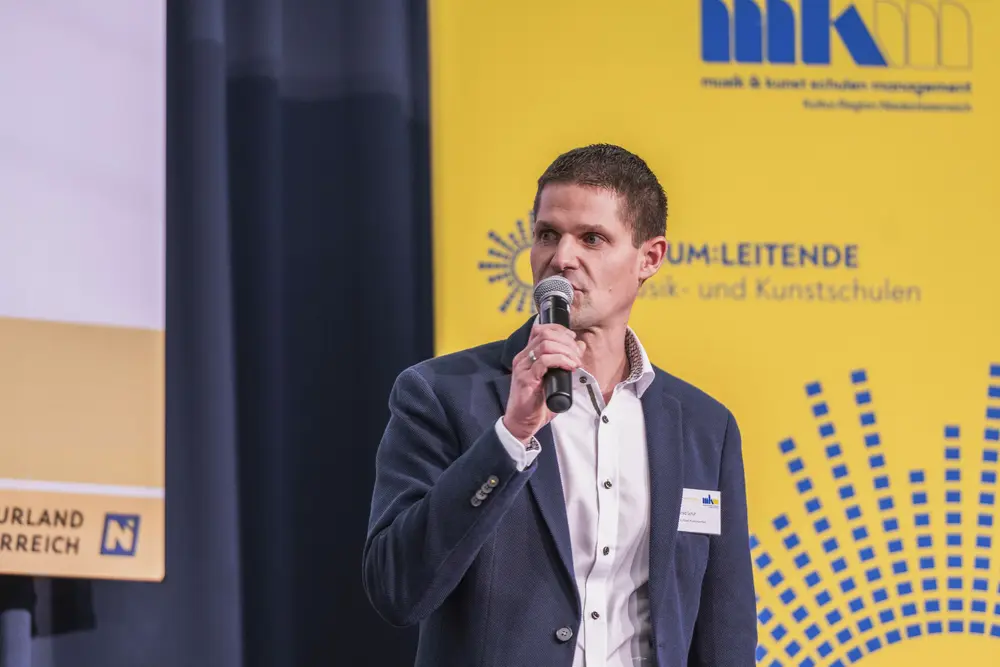 Ein Plädoyer für den Zusammenhalt hielt Kultur.Region.Niederösterreich-Geschäftsführer Martin Lammerhuber. „Zusammenhalten und Zusammenhalt sind keine Selbstläufer, sondern man muss aktiv Schritte setzen. Als Musikschulleiterinnen und -leiter übernehmen Sie hier eine wichtige Aufgabe und Vorbildwirkung. Durch Ihre Haltung, durch Ihre Persönlichkeit, Ihr Wirken können Sie in einer auseinanderdriftenden Welt im kleinen Bereich Zusammenhalt leben. Sie sind ein wichtiges Bindeglied, ein stabiles Scharnier, wenn Sie wischen Studierenden, Eltern, Lehrenden, Gemeinden oder Verbandsobleuten ausgleichen müssen. Sie sind Scharniere, wenn es um Entscheidungen geht“; betonte Lammerhuber die wichtige gesellschaftliche Aufgabe der Musikschulleiterinnen und -leiter und bedankte sich für deren Einsatz.